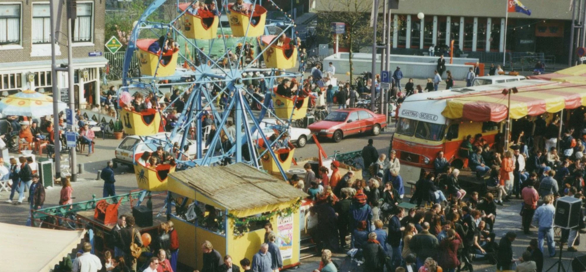 In the years that followed, the Aprilfeesten saw various formations; the first few years with the Danspaleis: a mirror tent from the late 19th century. Later with the Oranjerie, but always with the Bogententje, La Molina, Cantina Mobilé, and of course, the Zweef.